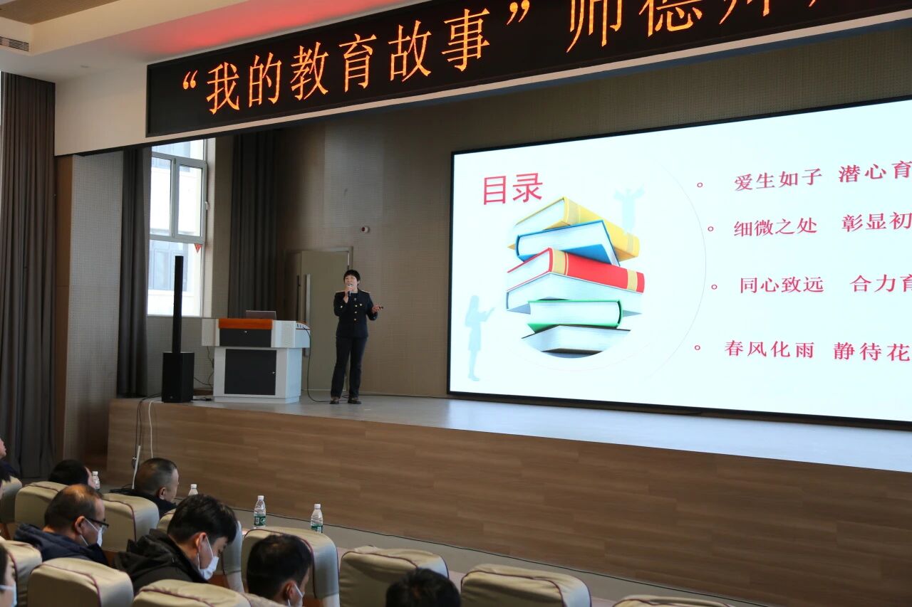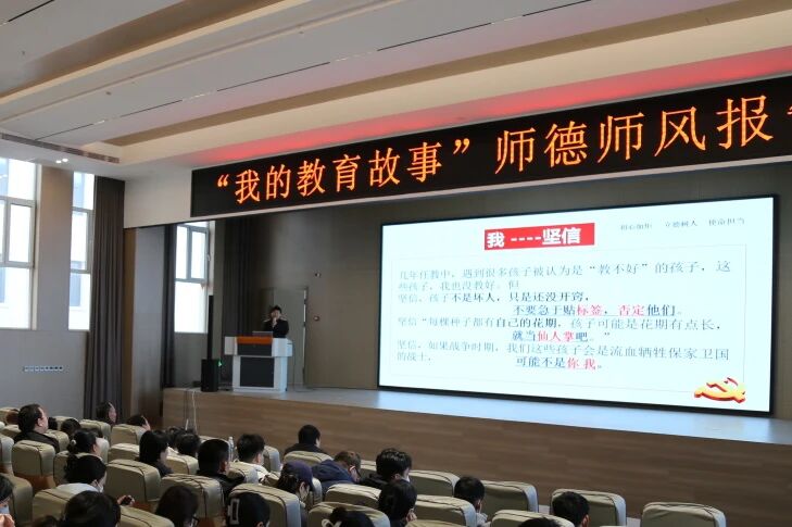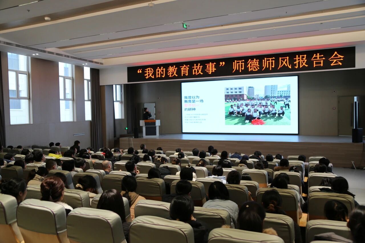 为激励教师学习身边榜样,弘扬高尚师德,坚定“为党育人,为国育才”的初心使命,提升教师的思想政治素养和职业道德水平,努力培养教师成为党和人民满意的“四有”好老师,11月18日下午,石家庄东华铁路学校在多功能报告厅隆重举行“我的教育故事”师德师风报告会。学校党支部副书记康力军、教育教学副校长李沫达、教学管理副校长赵雪峰、学生管理副校长马长青出席大会,大会由校团委书记刘璐主持,全体教师参加。