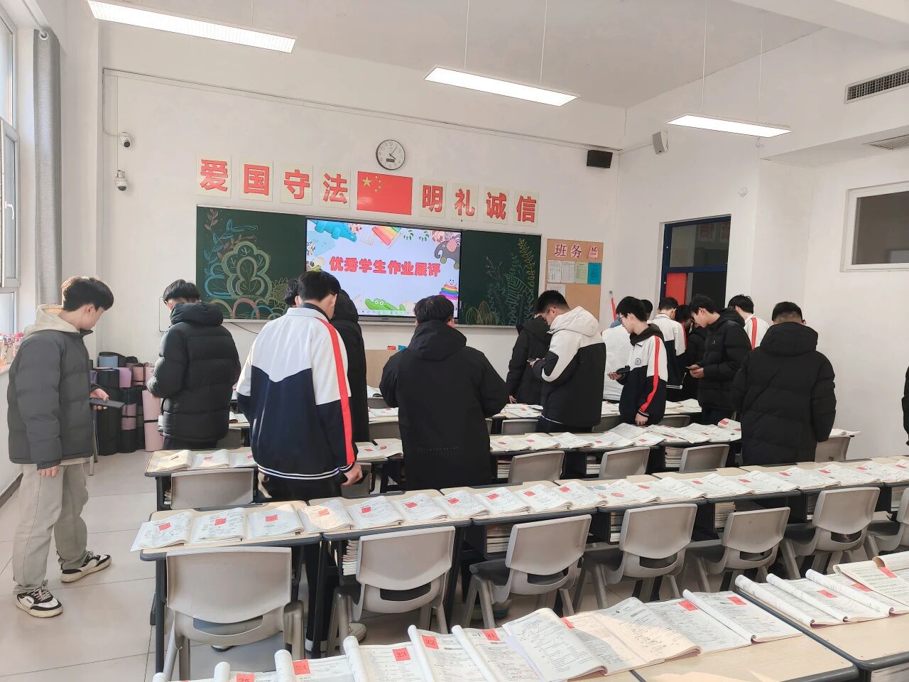 1月7日至8日,集中展评环节如期而至。各班选派10-15名学生代表,在教师的引导下有序参观。展台上,有的作业字迹娟秀、排版工整,尽显严谨态度;有的笔记图文并茂、重点突出,满是巧思创意;还有的习题解法多样、批注详实,彰显扎实功底。同学们在优秀作业前驻足良久,时而轻声交流解题思路,时而认真学习书写规范,在观摩中找差距、在借鉴中促提升,现场学习氛围浓厚而热烈。